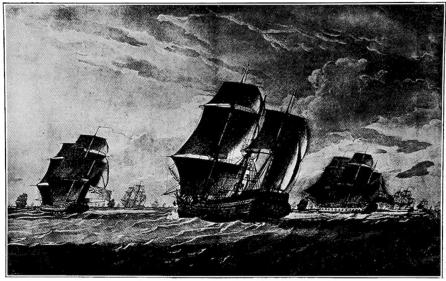 | The Lady Juliana in tow of the Pallas in 1782. From an aquatint by Robert Dodd | facing 122 |