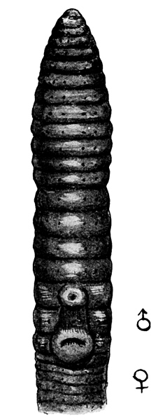 Fig. 1. Notiodrilus tamajusi. The worm shown from the ventral surface. About natural size. (After Eisen.)