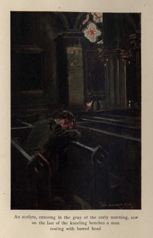 An acolyte, entering in the gray of the early morning, saw on the last of the kneeling benches a man resting with bowed head. In the adjoining room the archbishop himself had slept, within call, in his chair. He entered the chapel and an assistant robed him to say his mass before his single auditor. The service over, he made his thanksgiving, walked to where the man knelt and, touching him on the shoulder, the two left the room together.