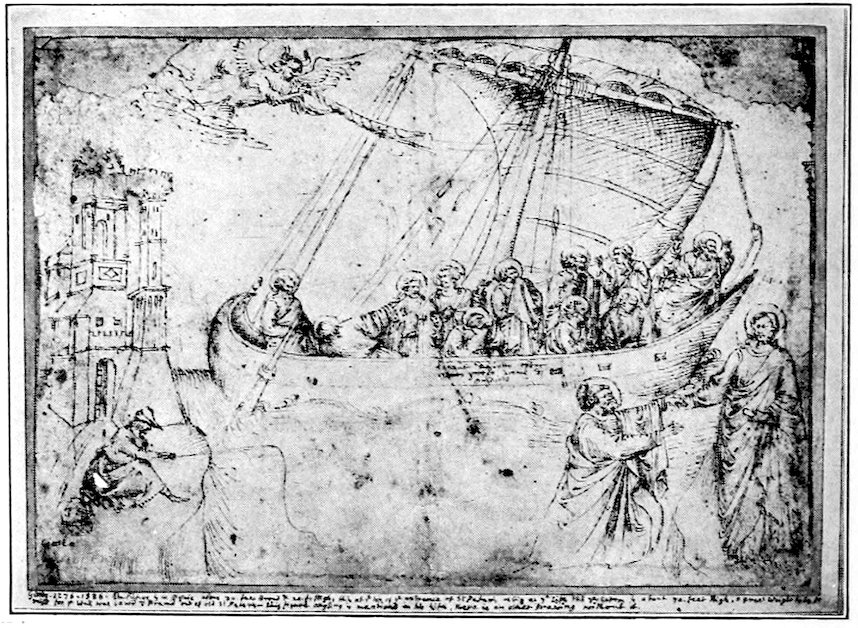 Fig. 12. Early Sketch Copy after Giotto’s Mosaic of the Navicella. Compare Fig. 31.—Metropolitan Museum, New York.