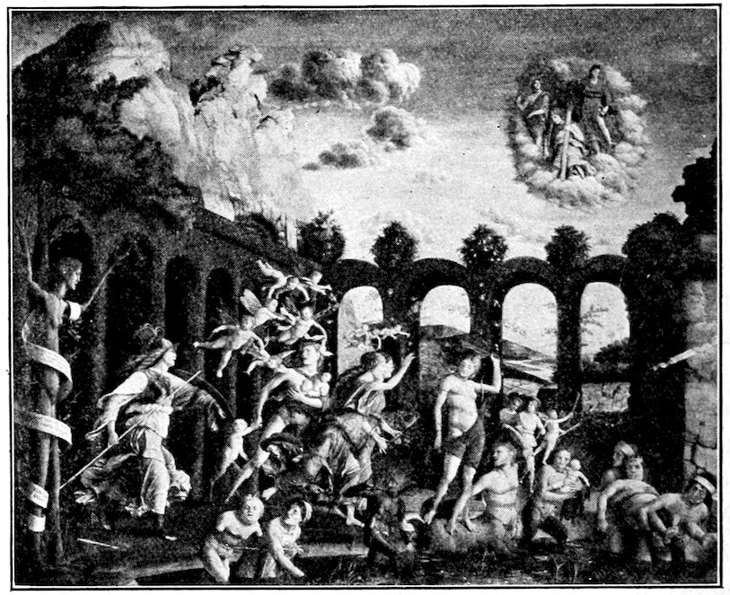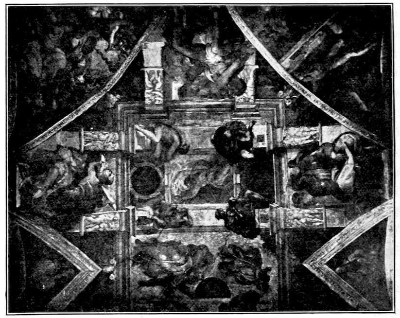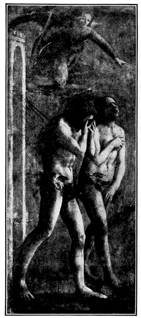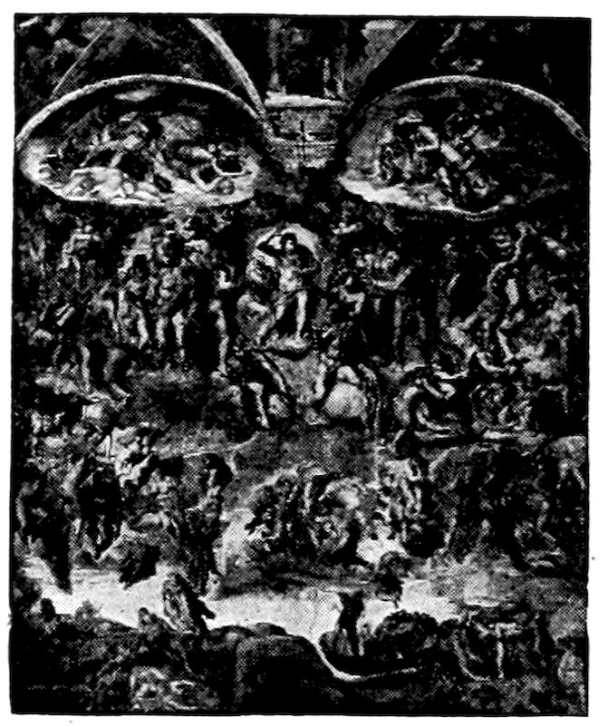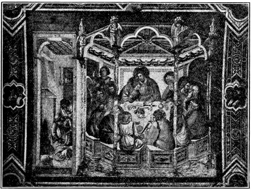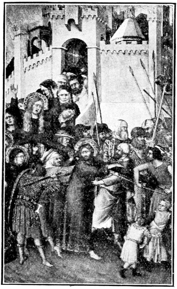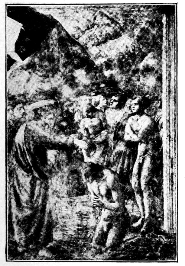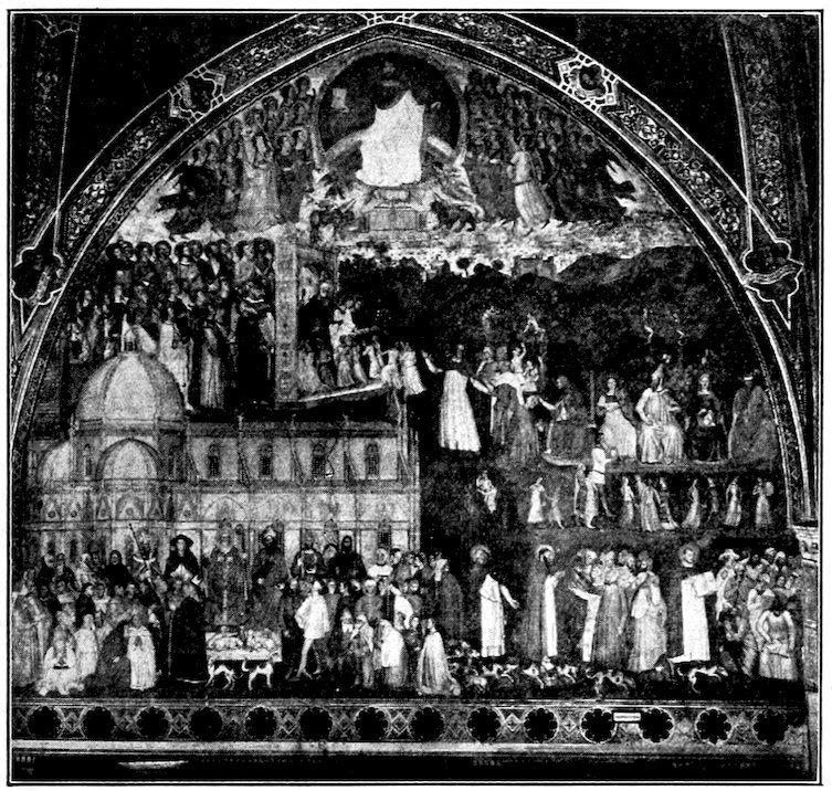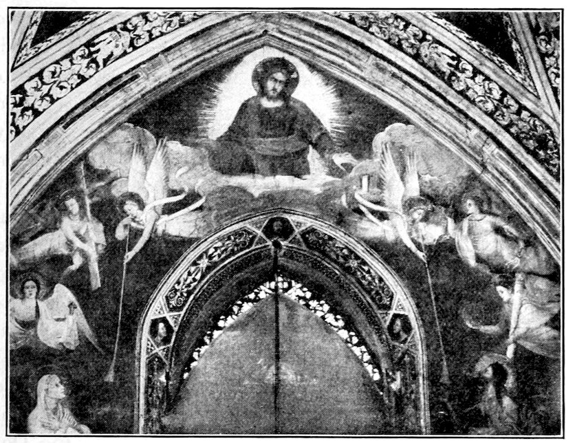 To recapitulate, there were three ways, all imperfect, open to a young and progressive painter who like Giotto di Bondone was forming a style about the year 1300. He might with the Sienese evade the issue of passion and naturalism, choosing for gracefulness, he might try over again the great adventure of his master Cimabue, endeavoring to bring emotion into the old unfit forms, or he might, like Pietro Cavallini, let emotion take care of itself and work academically towards better structure, drapery, light, and shade. His choice was absolutely momentous for modern painting, and I want you to feel that the issue was quite consciously and vividly before him, for he had spent much of his youth as a humble assistant in the basilica at Assisi, where frescoes in the vehement Tuscan manner of Cimabue and in the dignified Roman style of the Isaac Master were being painted side by side. His decision was to combine the merits of the two manners—to seek, like his master, sincerity and depth of emotion, but to embody it in the new and nobler forms of the Roman school. This decision virtually fixed the character of Christian art in Italy—it was 19to be warm and humanistic, but it was to revive much of that abstract nobility which old Rome had inherited from Greece. Thus Italian painting at the outset took a classic stamp which when true to itself it has never lost. In fundamental ideas of beauty, there is no real difference between Giotto, Masaccio, Leonardo da Vinci, Raphael, Titian, Michelangelo.