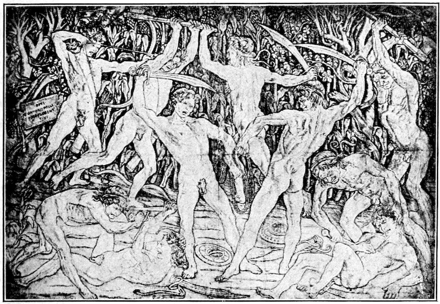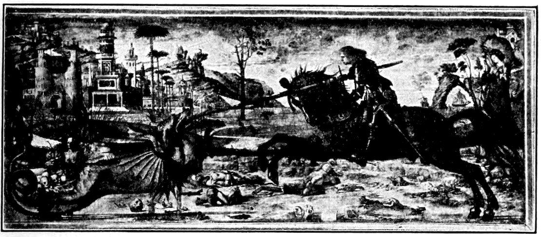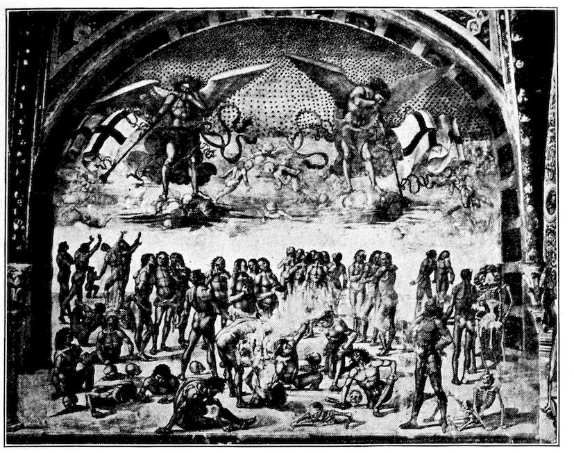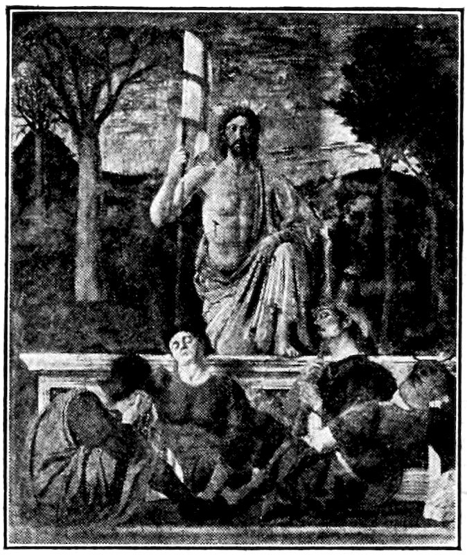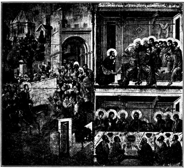 The Florentine ideal of Mass and Emotion—Its Humanism—The City of Florence about 1300—The Position and Methods of the Painter—The General demand for Religious Painting—Accelerated by the religious reforms of 1200, and changed in character—Insufficiency of the current Italo-Byzantine Style—Experiments towards a new manner: Duccio and the Sienese, Cimabue, Cavallini and the “Isaac Master”—Giotto—Immediate followers of Giotto, Andrea Orcagna and the return to sculptural methods—Later Panoramists, Andrea Bonaiuti and the Spanish Chapel.