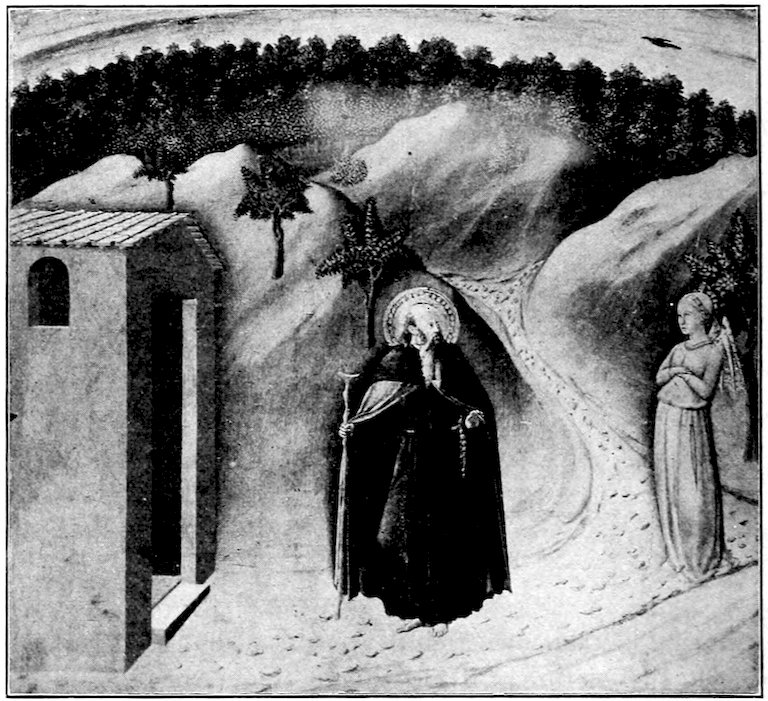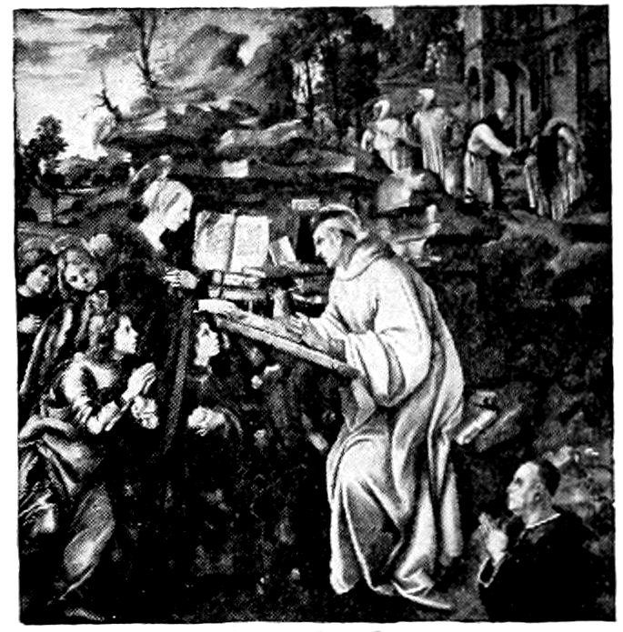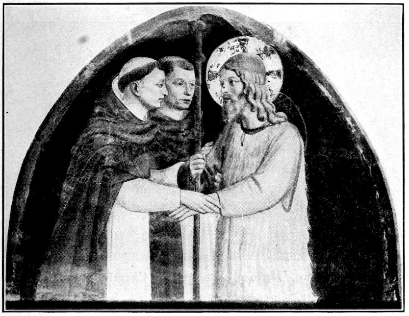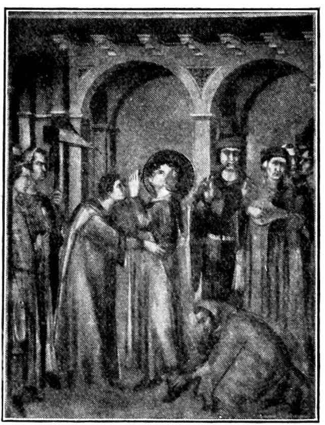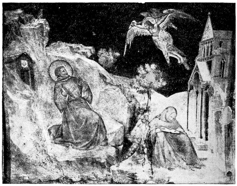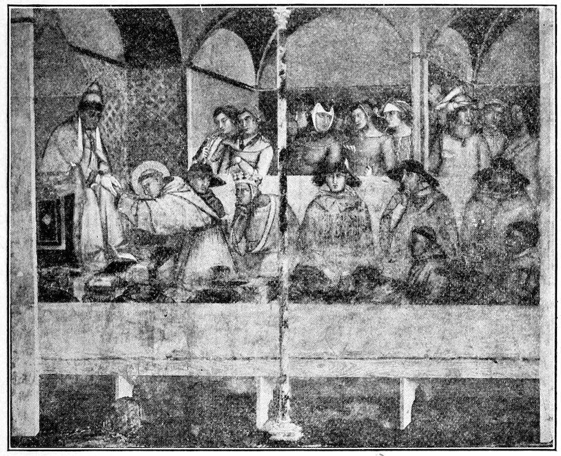 Such motives for picture-making Florence of course shared with the entire Christian world. It remains to explain why she wanted more painting and better than any other mediæval city. She wanted more painting chiefly because of her exceptional civic pride and prosperity, she wanted better painting because she had moved ahead of the world towards finer, 8more passionate, and conscious experiences of life which the older painting was powerless to express. About the year 1200, a century before the time we are considering, there flourished two great religious leaders who gave to Christianity a new dignity and appeal. St. Dominic, with his disciple, St. Thomas Aquinas, endeavored to make Christianity more reasonable, St. Francis of Assisi endeavored to make it more heartfelt and compassionate. They founded two monastic orders with divergent yet harmonious aims. The Dominicans called men to a life of study and self-examination, enlisting the human reason to explain and justify the universe under the Christian scheme; the Franciscans called men to poverty, humility, and chastity, and service to the unfortunate. Between the two—one supplying the light of the reason and the other the light of the heart—they overcame heresies which had menaced both Christianity and civilization and roused the Church out of its dogmatic slumber. It was no longer enough for the Church to threaten. Men yielded to her now only on condition that their heads be convinced or their hearts touched. In Florence, where a rationalizing shrewdness and a real warm-heartedness singularly blended, the double appeal was irresistible. By and large the whole city either schematized with the Dominicans or slummed with the Franciscans. Here was urgent new matter requiring an art that could move and persuade.