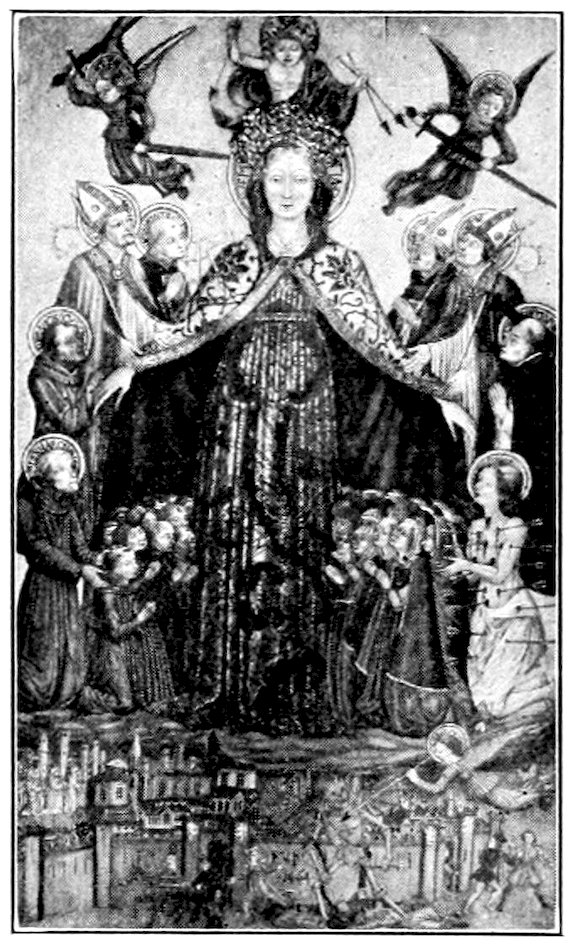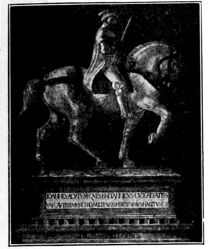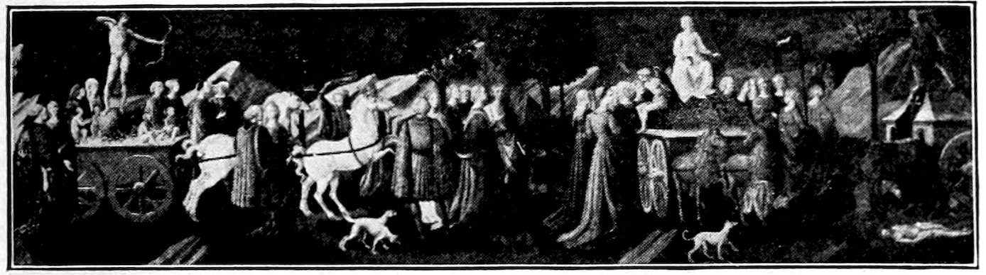 Florence was then as now a little city, its population about 100,000 souls, but it was growing. The old second wall of about two miles’ circuit was already condemned in favor of a turreted circuit of over six. Up the Arno the forest-clad ridge of Vallombrosa was much as it is today; down the valley the jagged peaks of the Carrara mountains barred the way to the sea. The surrounding vineyards and olive orchards by reason of encroaching forest were less extensive than they are now, 3but through every gate and from every tower one could see smiling fields guarded by battlemented villas. In the city, the fortress towers of the old nobility, partizans mostly of the foreign Emperor, rose thickly, but already dismantled at their fighting tops, for the people, meaning strictly the ruling merchant and manufacturing classes, had lately taken the rule from the old nobles. Many of these had fled; some had been banished, as was soon to be that reckless advocate of the emperor, Dante Alighieri, an excellent poet of love foolishly dabbling in politics. Other patricians sulked in their fortress palaces. Some shrewdly got themselves demoted and joined the ruling trade guilds. Of these guilds a big four, five, or six, governed the city, while a minor dozen had political privilege. Only guild members voted for the city officers. The guilds combined the function of a trade union and an employer’s association, including all members of the craft from the youngest apprentice to the richest boss-contractor. Such a guild as the notaries, must have been much like a bar association, while the wholesale merchants’ guild must have resembled a chamber of commerce. The guild folk had early allied themselves with the Pope, the only permanent representative of the principle of order in Italy. The Pope was also the bulwark of the new free communes against the claims of the Teutonic Emperors. So in Florence piety, liberty, and prosperity were convertible terms.
