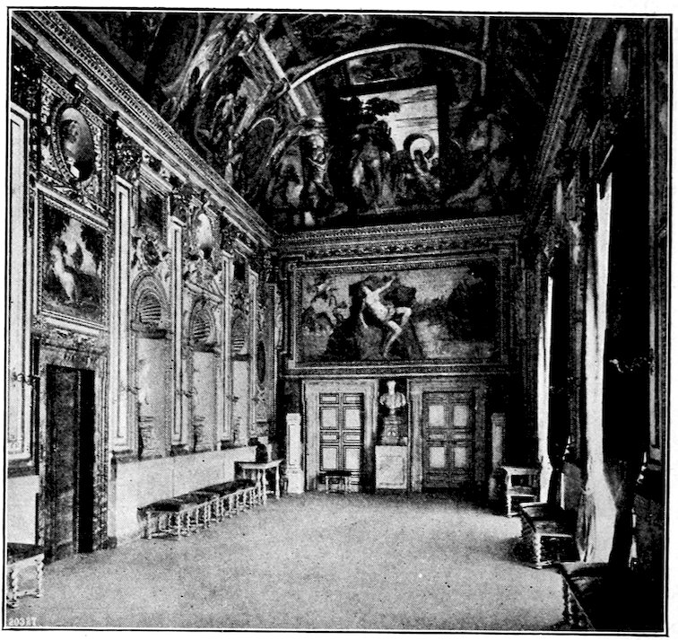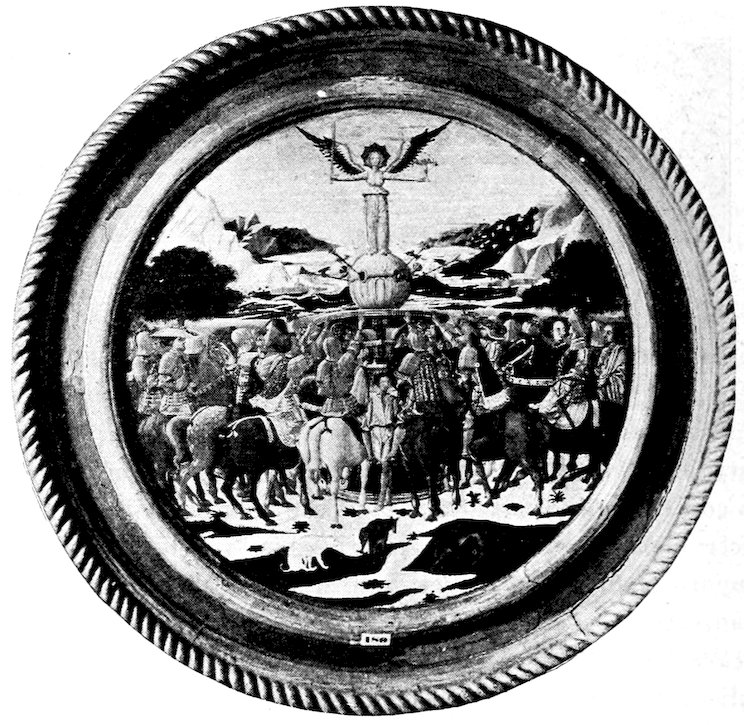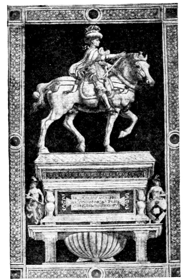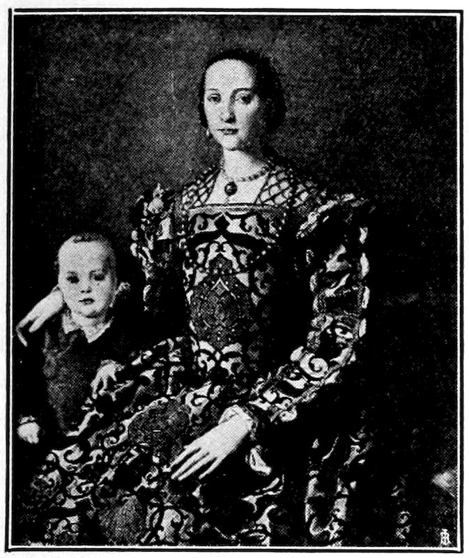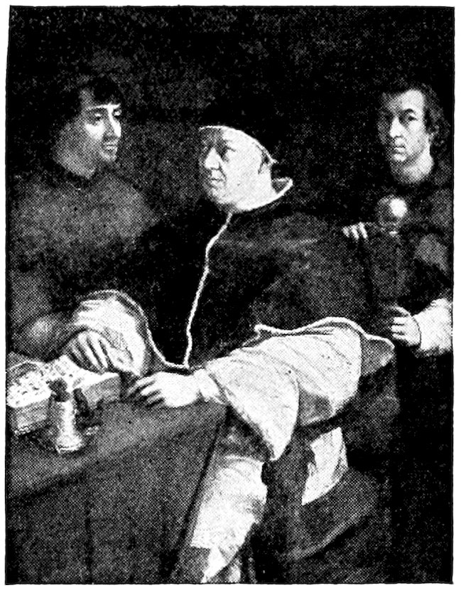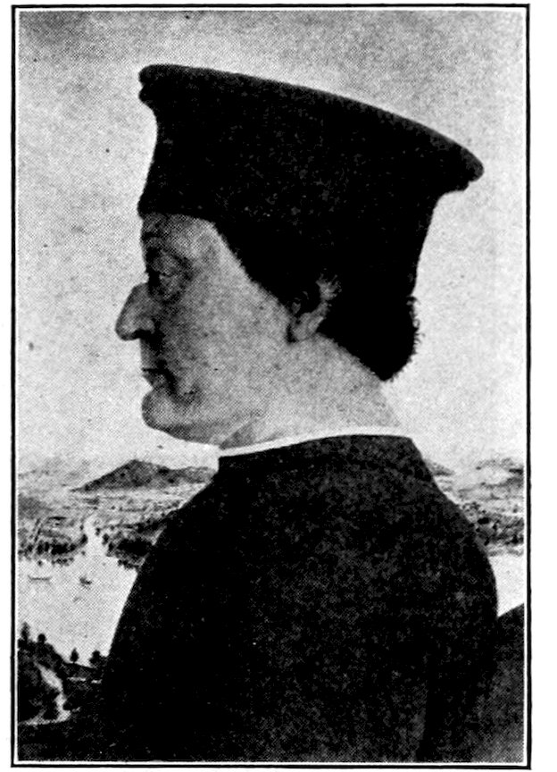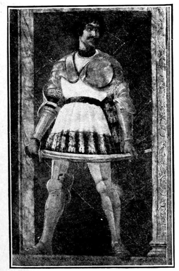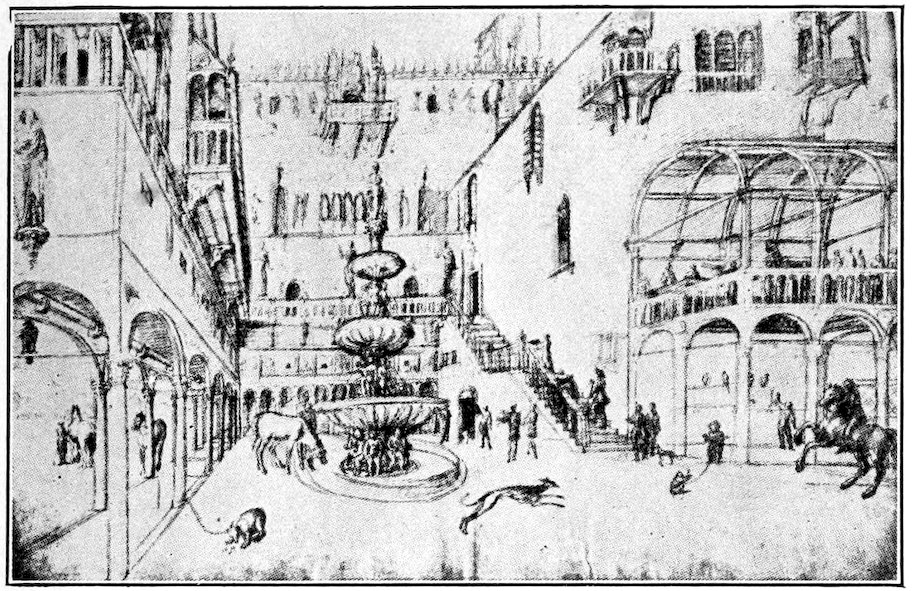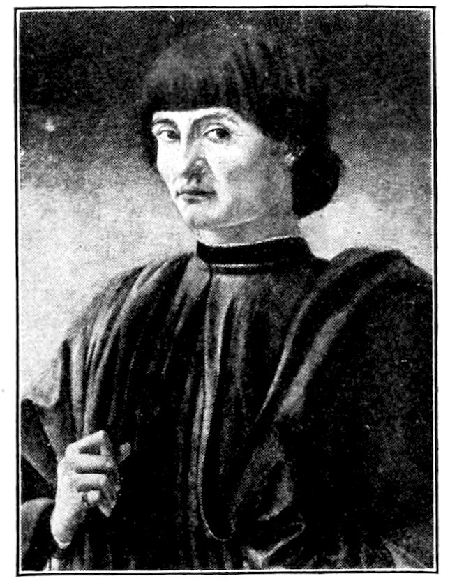 Within the narrow walls was a bustling, neighborly, squabbling and making-up life. Everybody knew everybody else. The craftsman worked in the little open archways you may still see in the Via San Gallo, in sight and hearing of the passing world. Of weavers’ shops alone there were 300. No western city was ever prouder than Florence in those days. Her credit was good from the Urals to the Pentland Hills. Her gold florin was everywhere standard exchange. She had secret ways of finishing the fine cloths that came in ships and caravans 4from Ghent, Ypres, and Arras; she handled the silks of China and converted the raw pelts of the north into objects of fashion.