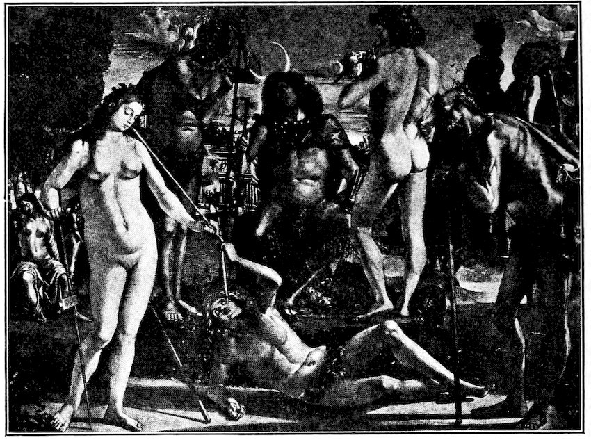 Upon the Feast of Herod with Salome modestly dancing John Ruskin[11] has expended just eulogies in the petulant yet 36important little book “Mornings in Florence.” What is notable in the scene is its general decorum and the pathetic indecision of the weak King.