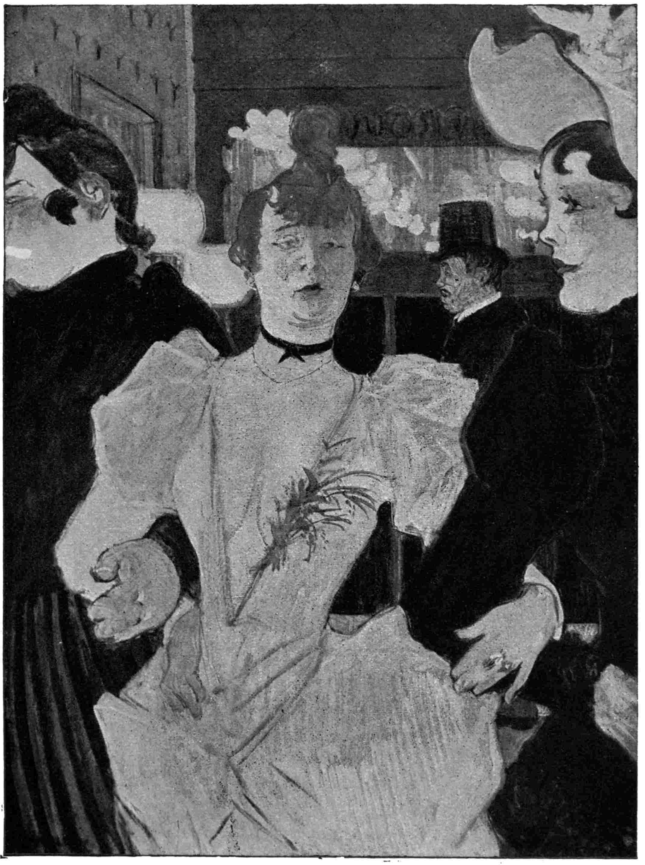 How beautiful in its simplicity and how exquisitely the curt legend “—— Rothschild,” fits that drawing of the little ballet dancer who whispers the portentous name into the ear of her sister coryphée, the while the moneyed man behind the scenes passes them.