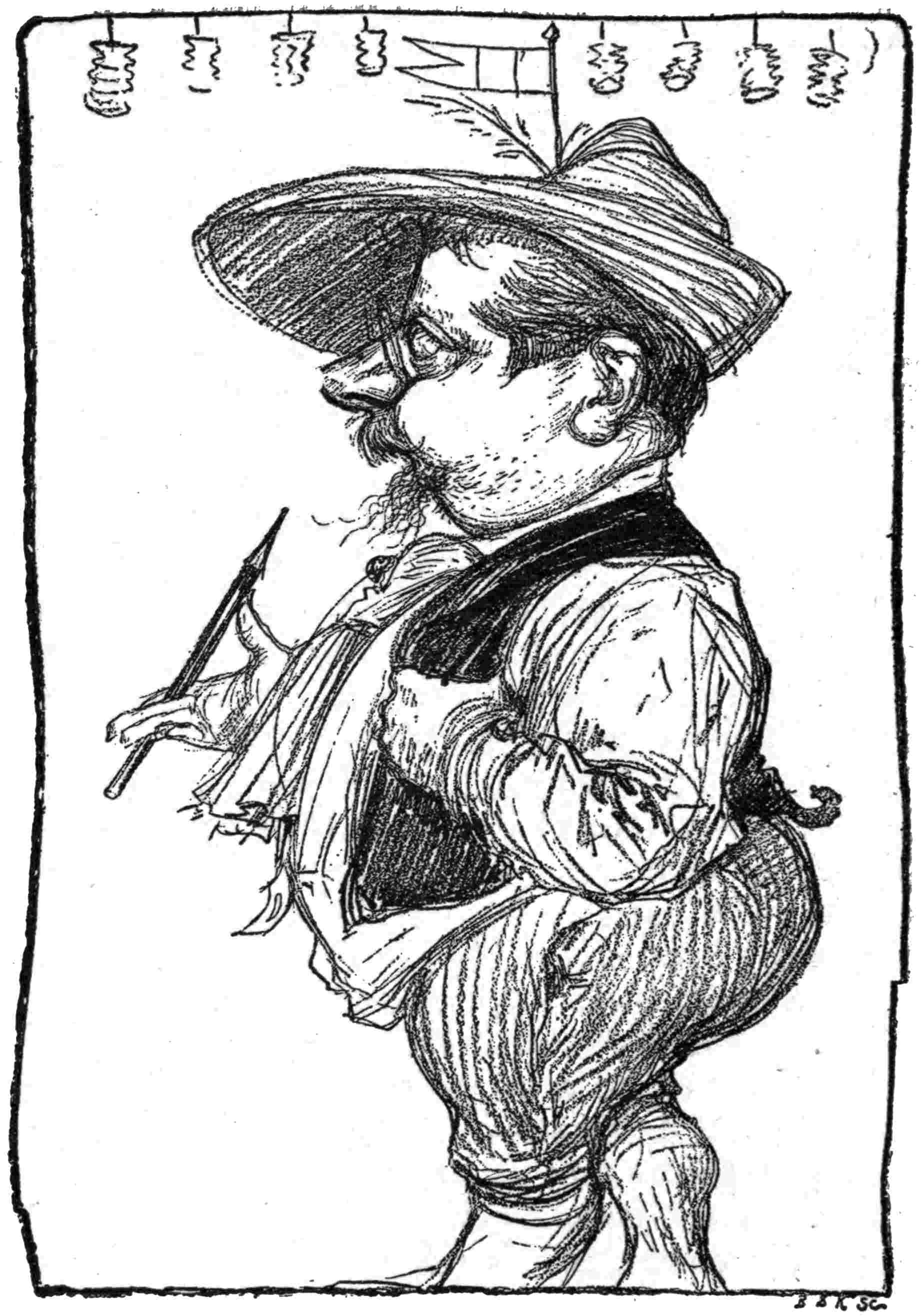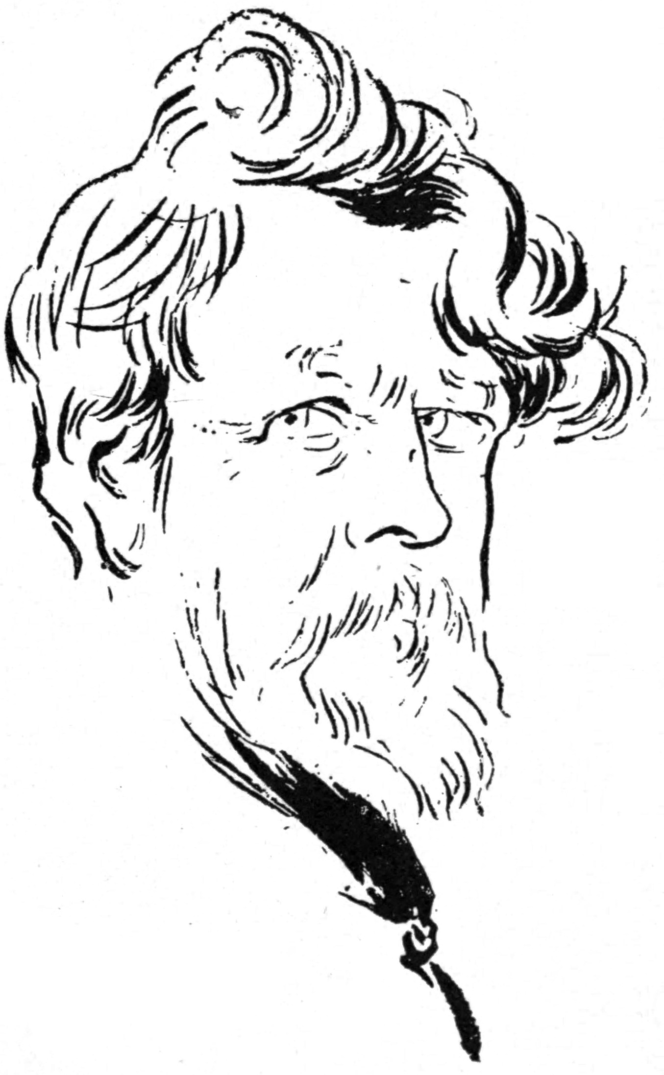 In his cartoons he occasionally approaches the somewhat nervous style of Willette, whom we incline to think time may prove to have been an overrated artist. The stronger method of Léandre, however, is particularly noticed in such drawings as Le Ministère en Vacances and Le Retour du Général Duchesne in Le Rire; and here we may mention how much many of the most excellent of the younger artists—such as Steinlen, Léandre, Malteste, Redon,76 Sabattier, Tilly, and Huard in France, Lockhart-Bogle, Hartrick, Almond and Gunning King in England, evidently owe to that giant among draughtsmen—Paul Renouard.