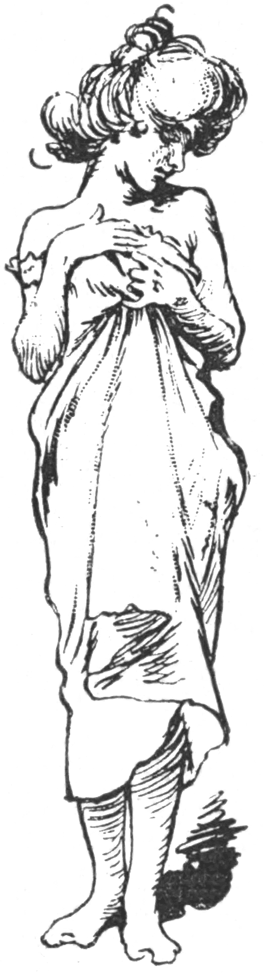 And this is one more justification of the writer’s long-urged plea that in London we are sadly in need of a National Water Colour and Black and85 White Gallery, for which the best obtainable examples of such work could be procured by gift or purchase, and thereafter exhibited. Stowed away in drawers and cupboards at the British Museum, at the National Gallery, and probably at South Kensington Museum and elsewhere—visible only in driblets, after regulated application, is untold wealth of beautiful drawings which should rightly be displayed on the walls of such a gallery as is suggested. Beautiful examples of work by living illustrators, both British and foreign, could be obtained for a comparatively nominal sum, and would exemplify a powerful and fascinating development of modern art; which meets the requirements of the day, in its own line, as fully as did the work of those early Italian masters in their time, which the nation’s art buyers collect so assiduously and at so much cost.