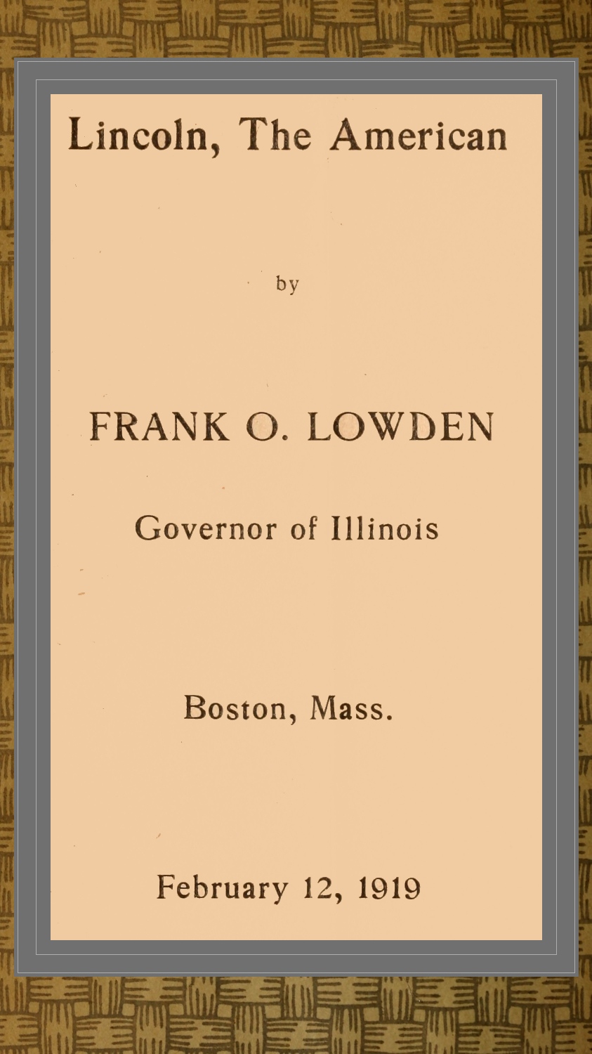 Principles rather than policies appealed to Abraham Lincoln. All great questions seemed to him to involve some moral quality. It was his habit, therefore, to resolve them into their simple fundamentals. It thus happens that many of his words are as apt and forceful to-day as when they were first spoken by him. Your Club has recognized this fact and has made “Lincoln, the American,” the theme of the evening. In harmony with this thought, I shall try to put before you some of the things for which Lincoln stood, which directly apply, as it seems to me, to the grave problems with which we and all the world with us are now confronted.