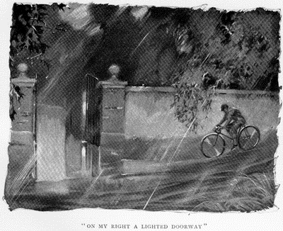 Presently I became certain that my instincts had not deceived me, for I heard the quick sound of a bicycle bell. This was odd, for surely no one would ring for me to get out of the way. Then there was another tinkle, a little nearer.