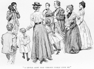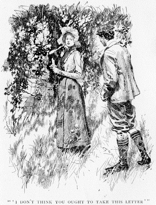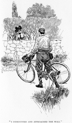 "You mustn't do that," said I. "I will put you on." And holding her bicycle upright with my left hand, I put my right arm around her and lifted her to the seat. She was such a childlike, sensible young person that I did not think it necessary to ask any permission for this action, nor even to allude to its necessity.