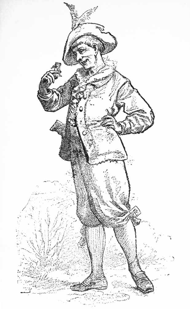 It was on the morning of the next day that there came through the forest, not very far from the Count Cormo’s castle, a tall young giant. As he strode along, he appeared to be talking to the forefinger of his right hand, which he held up before him. He was not, however, talking to his forefinger, but to a little fairy who was sitting on it, chatting away in a very lively manner.