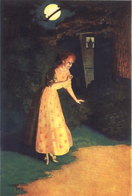 "Prosper tells me," continued the Abbé, "that every midsummer's eve—you know I am always away in midsummer and I only know this of old Prosper—there[Pg 213] is a beautiful quaintly dressed lady of the long ago who makes her abode in the great east room. She is a very weepy, pretty lady, at first, Prosper asserts. Then, when a great splendid buck of a fellow in laces and frills and long-plaited powdered hair comes climbing up by way of the portico, she quickly becomes very beautiful and the light of her eyes brightens the whole room. In fact it is this very brilliancy which attracts another gentleman who comes from the hallway. Immediately, with much bowing, he invites the gallant cavalier off to the wine cellars, where blood is spilled.... Now I tell Prosper it is merely rats he hears with his deaf old ears.