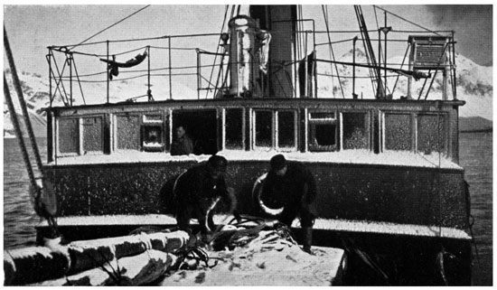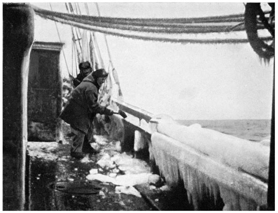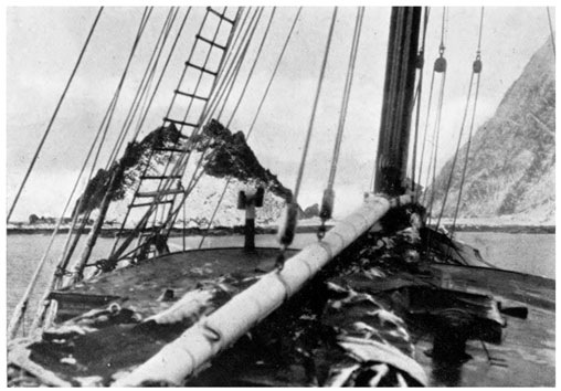 [8] On leaving South Georgia, I had moved into Sir Ernest’s cabin, and McIlroy took my old one. Both cabins opened on to the waist of the ship, and were consequently frequently flooded with the heavy seas which rushed to and fro there.