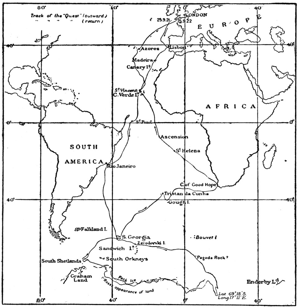 In the subsequent pages of this book the reader will find recorded the story of the voyage of the Quest, the tight little ship that carried us through over twenty thousand miles of stormy ocean and brought us safely back.