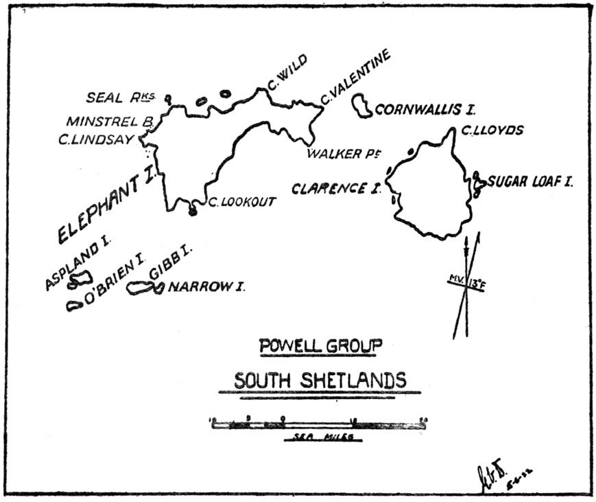 [10] Referring to a telegram sent by Sir Robert Baden-Powell to Sir Ernest Shackleton just as we were leaving England to the effect that if the Scouts did not serve him well he would “skin them alive” on their return.