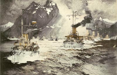 The trip was one of surprises. The coolness of the people of Trinidad was as great a surprise as was the exuberant welcome of Brazil and other foreign countries. Rio's welcome was the most demonstrative, Callao's probably the most heartfelt, that of Punta Arenas the most unexpected. There were two highly spectacular events on the cruise—the welcome at sea on the morning of January 29 by a squadron of the Argentine navy off the mouth of the River Plate and the entrance to and exit from Valparaiso harbor on the afternoon of February 14. The American and Argentine fleets exchanged national salutes on the high seas. Many naval officers believe this was the first time such an act of courtesy ever took place.