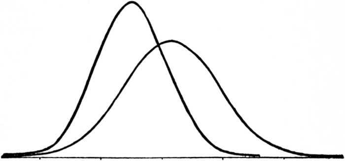 There is one peculiarity common to both problems, which must be described before we can properly take up their treatment. When we compare the individuals comprising any one racial or social type, we find that they are not by any means uniform, but exhibit considerable variation. When we try to think of a Norwegian and of a negro, two entirely distinct types will be present to our minds,—the Norwegian, tall, with blond and somewhat wavy hair, blue eyes, light complexion, delicate face and nose; the negro, of medium stature, with black and frizzly hair, dark eyes, dark skin, projecting jaw, and heavy flat nose. Still, these pictures are only abstractions of what we think we have noticed most commonly in each type. When we compare the Norwegians among themselves, 32or the negroes among themselves, we find that each individual in each series has his peculiarities, which the others do not share. There are tall and short Norwegians; their hair is blond or dark, straight or wavy; their eyes vary from brown to blue; their complexion is light or dark, their faces more or less delicate. And so with the negroes. The degree of blackness, the amount of projection of the chin, the flatness of the nose,—all show very considerable variations. Experience has demonstrated that in all cases of this kind, one certain type, one certain combination of features, is most common; and that deviations in either direction from this type become the rarer, the greater their amount. Thus the Norwegians show a prevalence of a certain blond color. Individuals with a color of hair much lighter than the most common color are the rarer, the greater the difference of their hair-color from the most common one; and in the same way individuals with a color of hair much darker than the most common color are the rarer, the greater the deviation of their color of hair from the common one. The extent to which such variations occur is not always the same. In some cases the individuals constituting the group show a remarkable similarity or uniformity of type; in other cases the diversity of types occurring in 33the same community is quite remarkable. We call a series the more variable, the more frequently deviating types occur in it; so that the average amount of differences between the individuals constituting the series and the most common type may be used as a measure of the variability of the series.