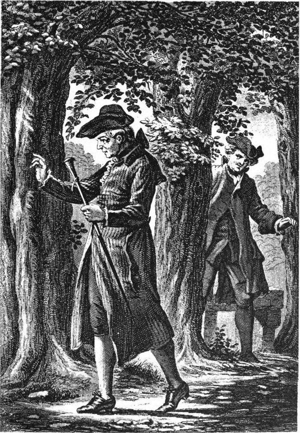 Father Mozart, ordinarily a very calm, sedate, self-possessed man, was hardly himself to-day, for by the blessing of God a wish, long and secretly cherished in his heart, had been realized. A little son had been given him. When he reflected that he would educate and instruct him, inspire him in his early years with a love for his beautiful art of music, and, with divine aid, develop him into a great musician, a thousand hymns of joy exultantly sang themselves in his heart, and his fancy painted bright pictures of the future. He was oblivious of all around him. He had no eyes for the attractions of the unsurpassably beautiful country stretching out in every direction like a blooming garden. He thought of nothing but his little son. He rubbed his hands together exultantly, muttered unintelligible words to himself, looked up with radiant glance into the blue and now cloudless sky, and so far forgot himself as to indulge in loud and joyous peals of laughter—laughing upon the public highway!—something which no one before had ever known the vice chapelmaster to do. He acted really like one completely beside himself, and so absent-mindedly, indeed, that he failed to observe a gentleman approaching him from Heilbronn, who had been watching him for some little time with a quiet smile. The new-comer stepped behind a tree trunk, and as the happy father was going by without seeing him, he came up behind him, tapped him on the shoulder, and said in good-natured banter: