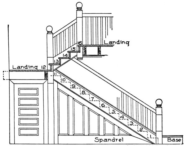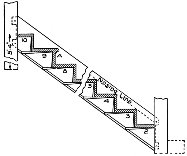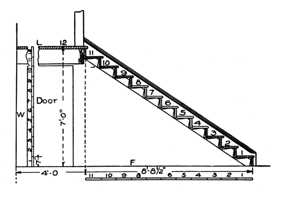 [A] Note.—The measure for the rise of a stairway must always be taken from the top of one floor to the top of the next.