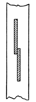 Notched strings are strings that carry only treads. They are generally somewhat narrower than the treads, and are housed across their entire width. A sample of this kind of string is the side of a common step-ladder. Strings of this sort are used chiefly in cellars, or for steps intended for similar purposes.