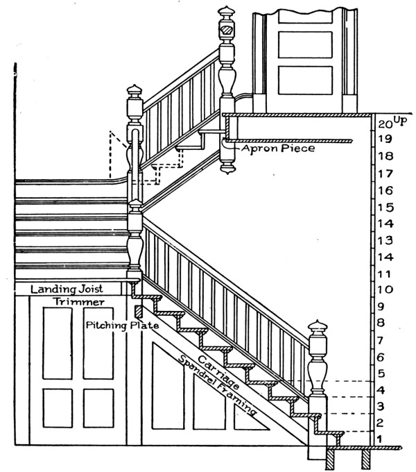 The stairs are an important feature of a building. On entering a house they are usually the first object to meet the eye and claim the attention. If one sees an ugly staircase, it will, in a measure, condemn the whole house, for the first impression produced will seldom be totally eradicated by commendable features that may be noted elsewhere. It is extremely important, therefore, that both designer and workman shall see that staircases are properly laid out.