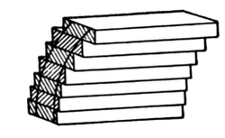 Rough strings are cut from undressed plank, and are used for strengthening the stairs. Sometimes a combination of rough-cut strings is used for circular or geometrical stairs, and, when framed together, forms the support or carriage of the stairs.