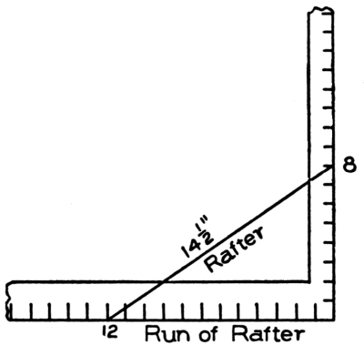 | finding length to shorten rafters for jacks per foot of run | II, | 18 |