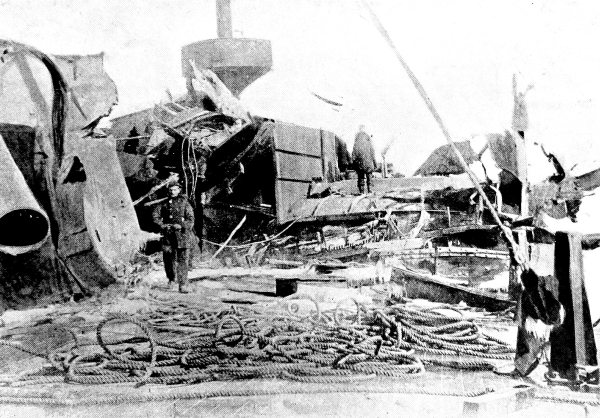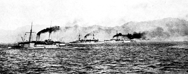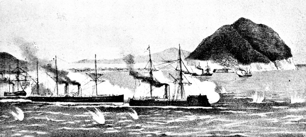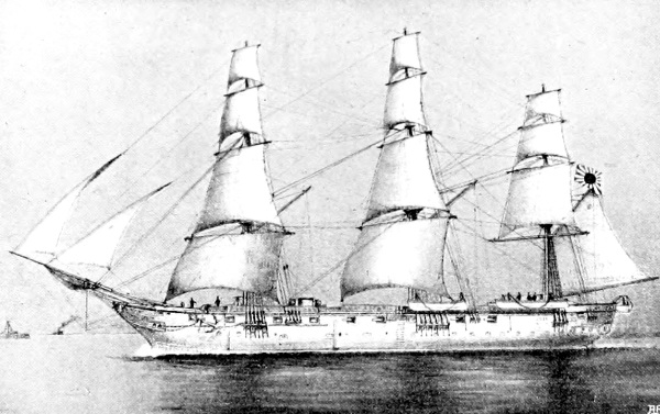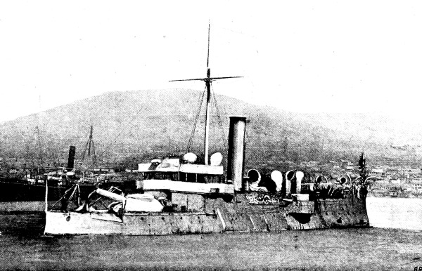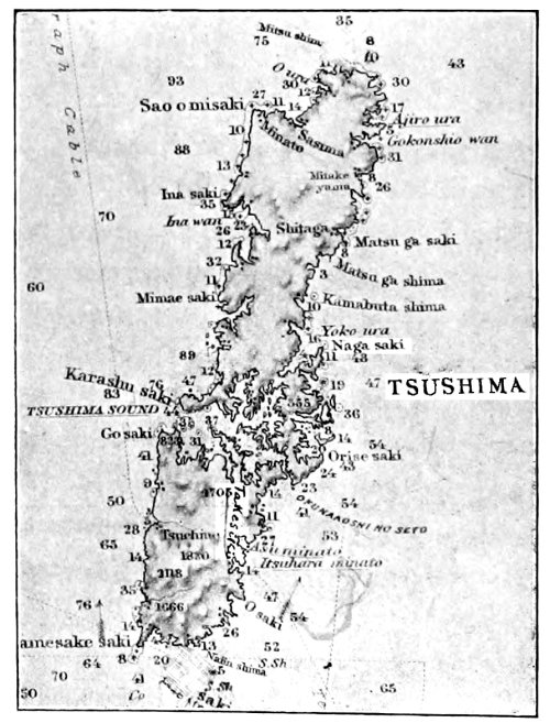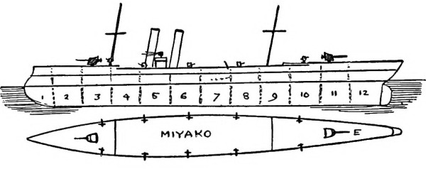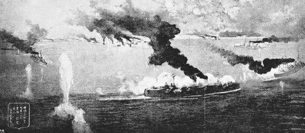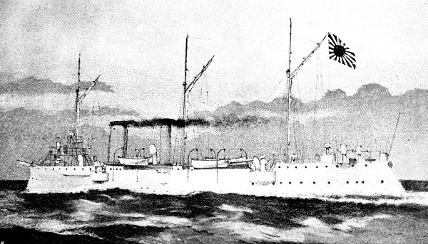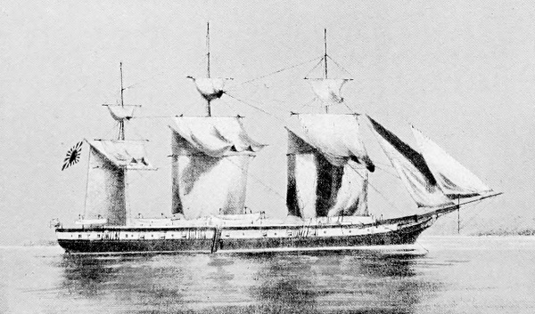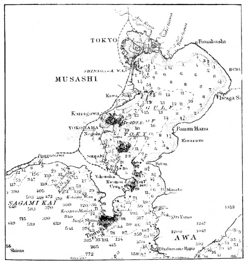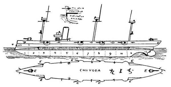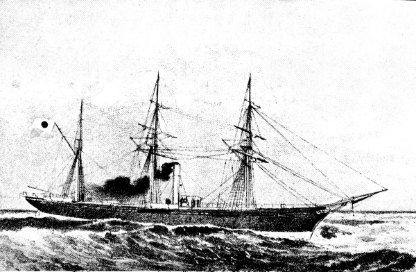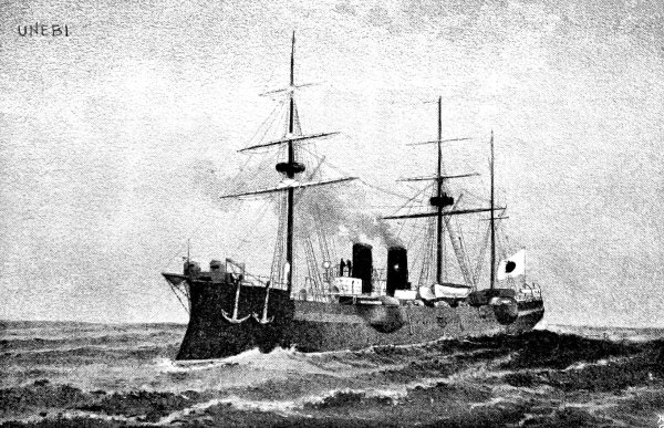 [15] It was currently reported, and for a long time believed in Japan, that the Unebi had been captured by the Chinese and taken into one of their harbours. Another report was to the effect that the Chinese had waylaid and destroyed her—a not impossible incident. A typhoon is, however, a more likely cause. It may be remembered that our gunboat Wasp mysteriously disappeared in Far Eastern waters, and nothing was ever heard as to how she perished.