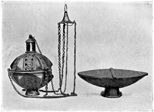 I am further indebted to Messrs. Glendining & Co., Ltd., who have given me permission to reproduce some beautiful Oriental metal-work which has recently passed under the hammer in their London Galleries; also to Messrs. Herbert Benham & Co., for a drawing of the copper ball and cross of St. Paul's; and to Mr. Amor, of St. James's, S.W., The Edward Gallery, of King Street, S.W., and Mr. Chas. Wayte, of Edenbridge, who have given me photographs of rare pieces of art metal-work.