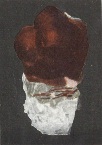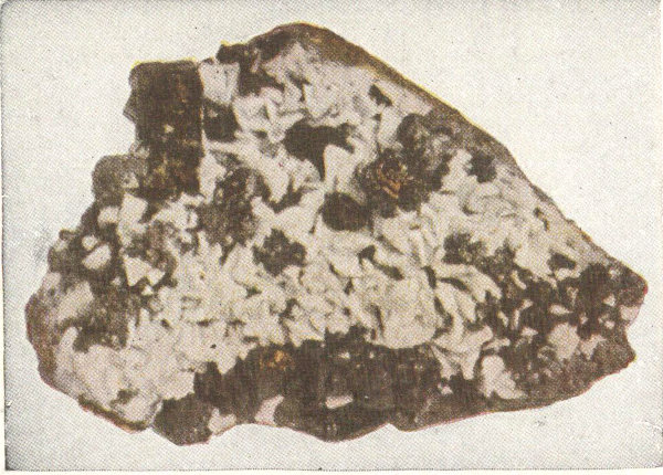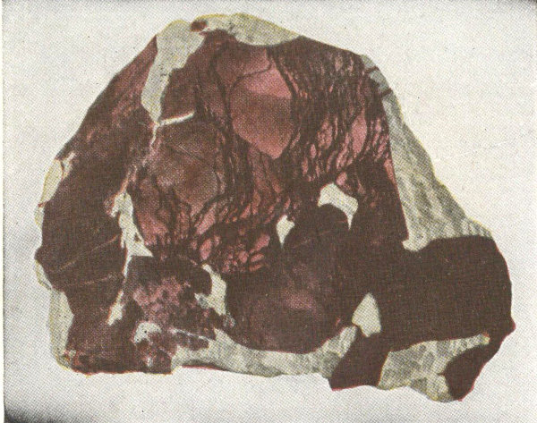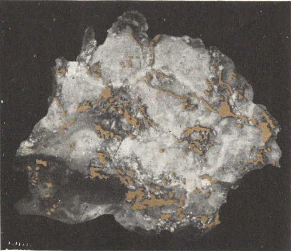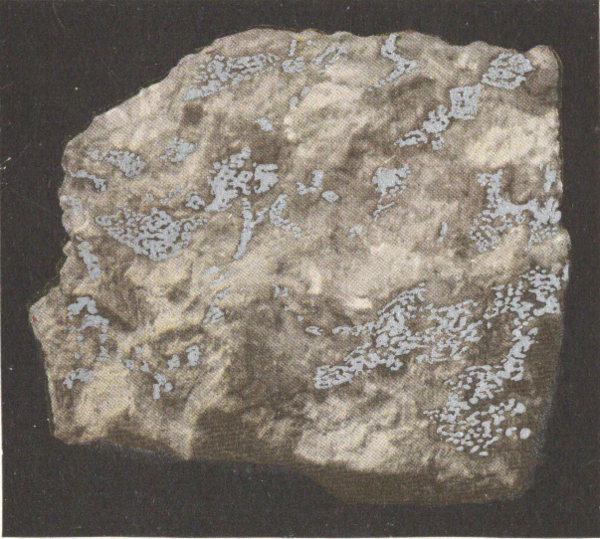 - Plate 6.—Native silver in calcite. Argentite, the black masses throughout the white quartz (in color) 281