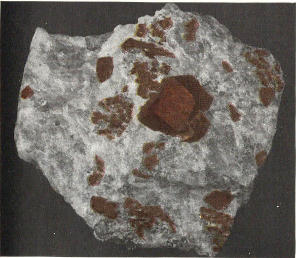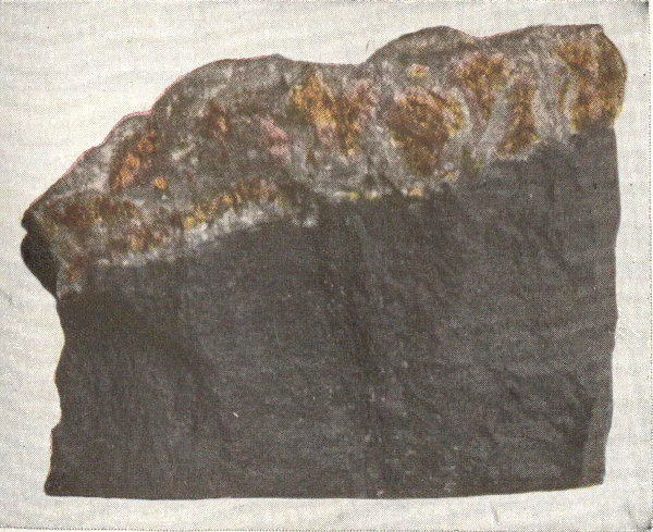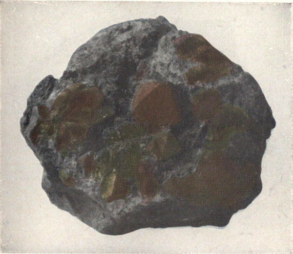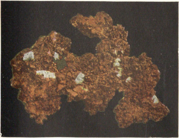 - Plate 8.—Native copper from Michigan. Chalcopyrite in tetrahedrons and an occasional octahedron; streak to the left (in color) 283