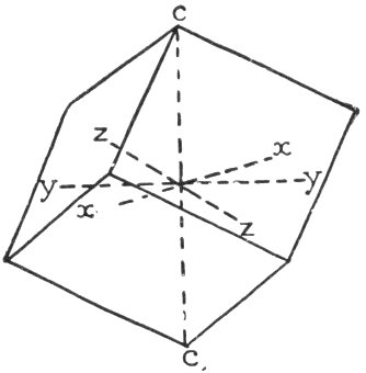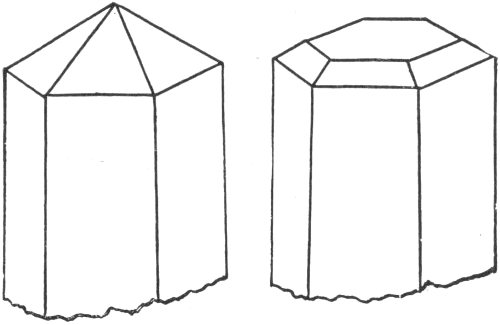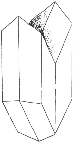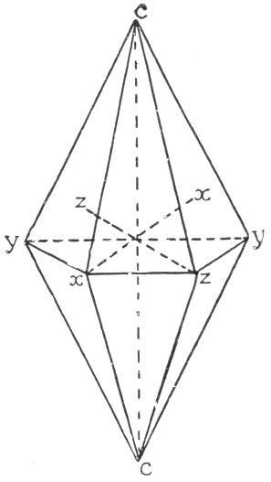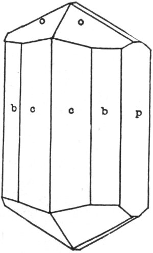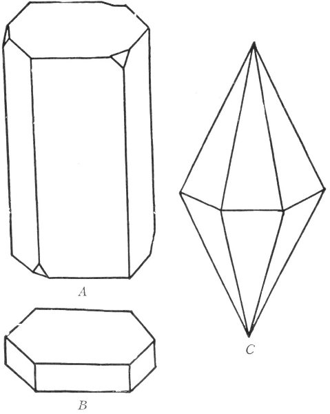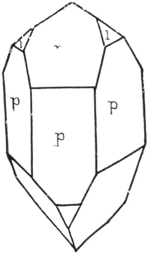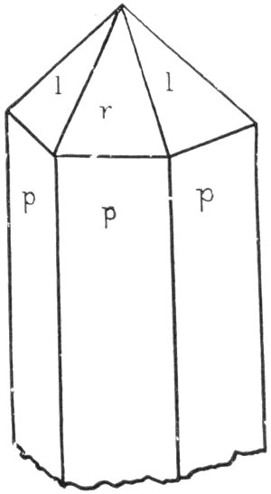 - Plate 30.—Two intergrowing or twinned quartz crystals. Diagram of the typical quartz crystal. A quartz crystal on which the left hand rhombohedron is represented by small faces, while the right hand rhombohedron has large faces 316