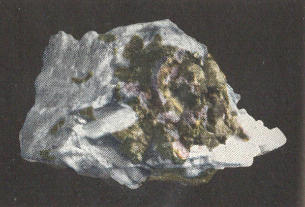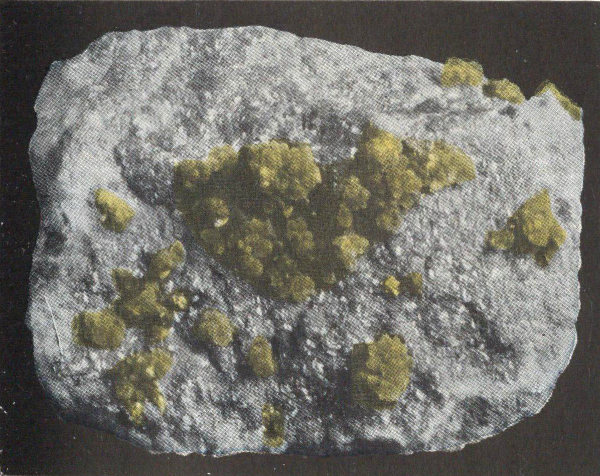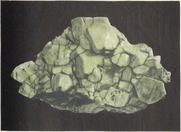 - Plate 21.—Smithsonite in yellow crystals. Franklinite in octahedral crystals, streak to left (in color) 291