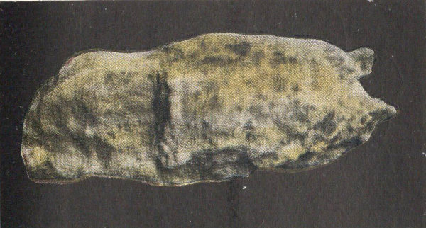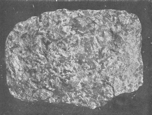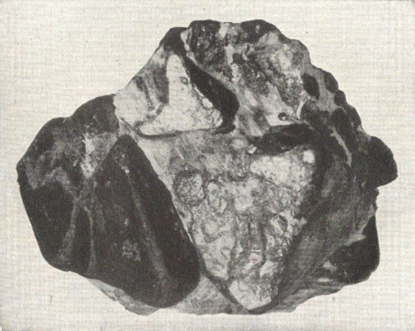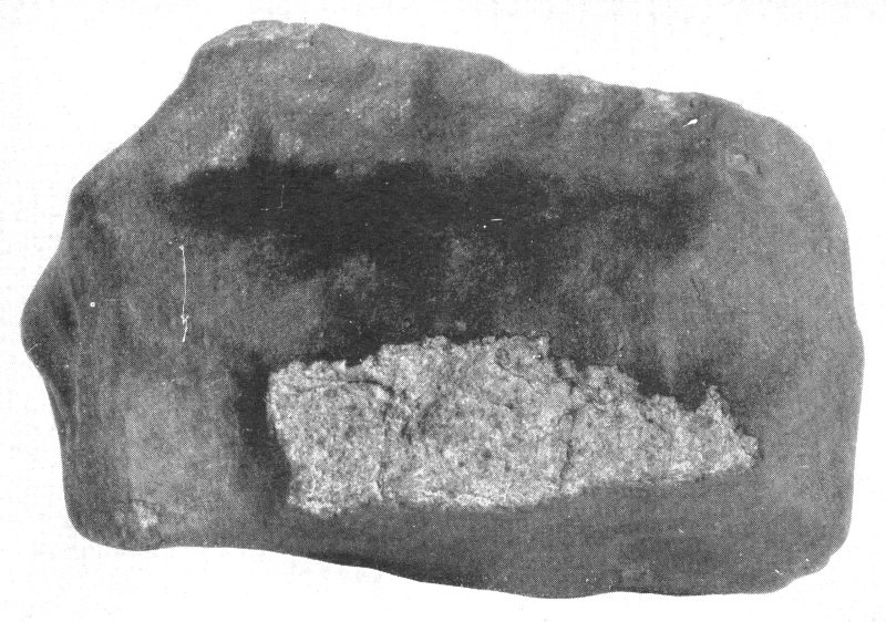A stony meteorite, about natural size, which fell in 1875, in Iowa Co., Iowa
