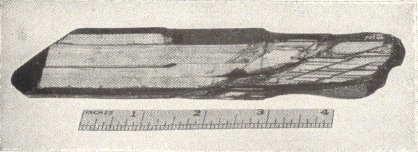 - Plate 40.—Cyanite crystals in schist. A crystal of mica, showing basal cleavage (in color) 303