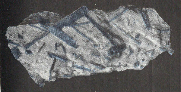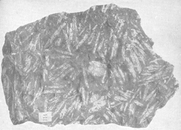 - Plate 37.—Diagrams of amphibole crystals. Tremolite in silky fibrous crystals, asbestos. Hornblende crystals in quartzite 326