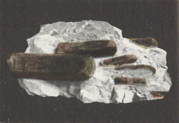 - Plate 25.—Large crystals of stibnite; the light colored face is the one parallel to which cleavage occurs. Niccolite is a vein in slate (in color) 293