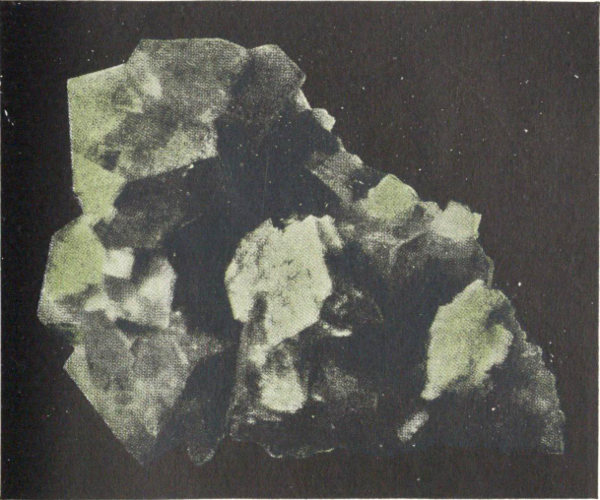 - Plate 50.—A group of fluorite crystals. A group of halite crystals (in color) 307