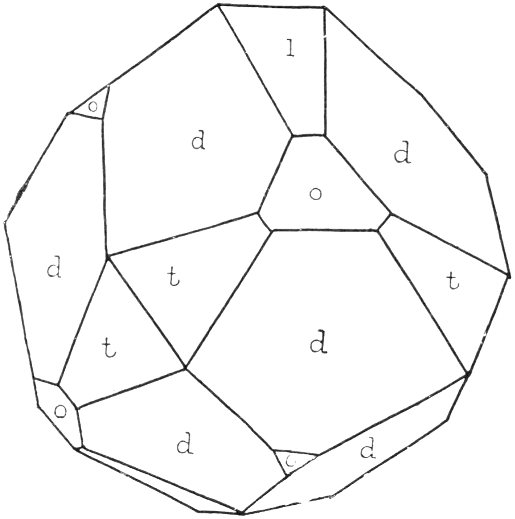 - Plate 16.—The pyritohedron. The pyritohedron with certain of its edges beveled by the cube faces, to show the relationship of these two forms 318