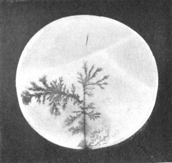 - Plate 22.—Moss agates, showing the dendritic growth of manganitic minerals, like manganite or pyrolusite. Crystal form of manganite 321