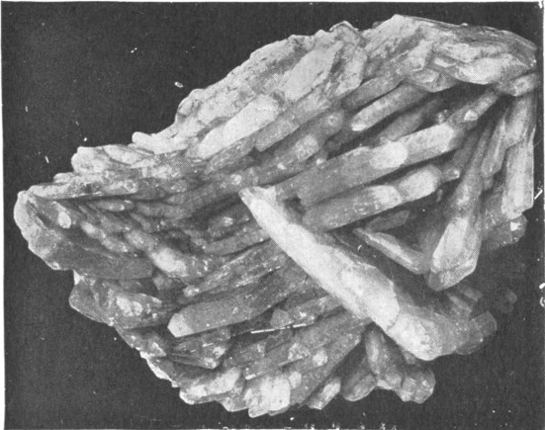 - Plate 48.—A group of barite crystals. Outline of the typical tabular barite crystal. The six-sided double pyramid, composed of three interpenetrating crystals, typical of witherite and strontianite 328