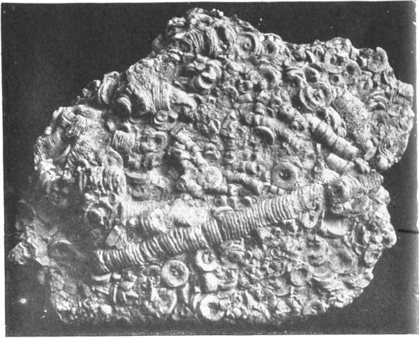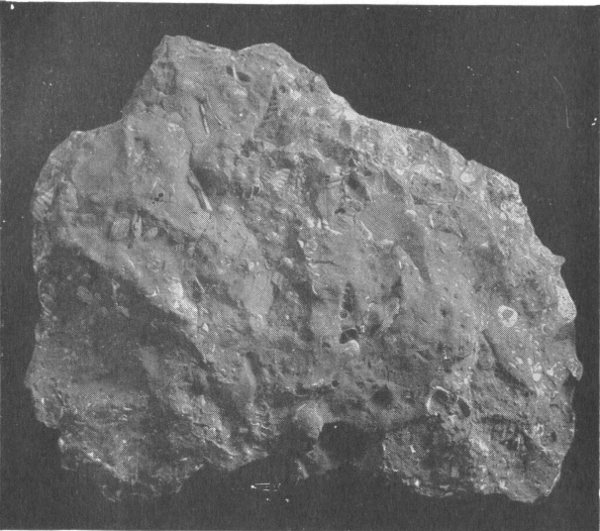 Encrinal Limestone; fragments of the stems, arms and body of Crinoids