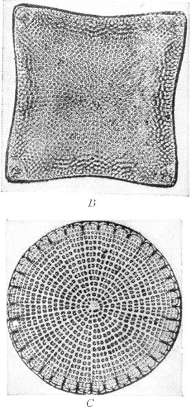 B and C two diatoms from the above enlarged 250 times. After Gravelle, by the courtesy of Natural History