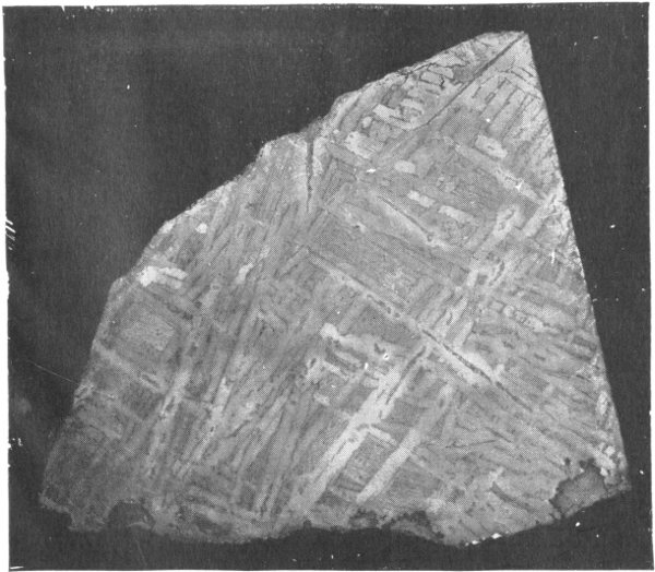 An etched slice of an iron meteorite which fell in Reed City, Osceola Co., Mich.