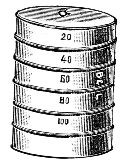 | 84 | 144 square inches of water, with an opening ¼ × 12 inches at the base | 144 cubic inches of water, with an opening ¼ × 12 inches at the base |