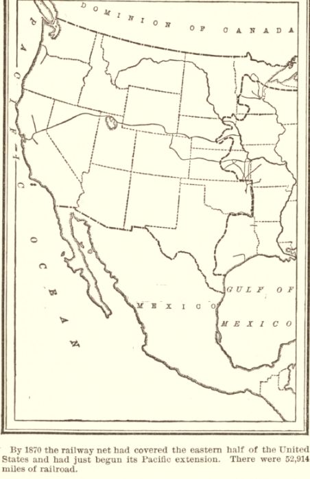 The trunk-line railways with their spurs and branches adjusted themselves early in the war to the new direction of business currents. They then began to carry the new inhabitants into the cities, the new manufactures to their markets, and to press upon iron, coal, and timber for their own supplies. Men of business laid the foundations of huge fortunes in supplying the new and growing demands. The stock company, with negotiable shares and bonds, made it possible for the small investor to share in the larger commercial profits and losses.