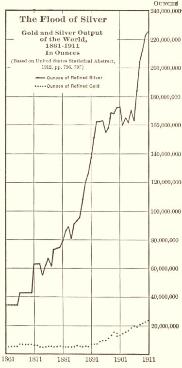 By taxing and borrowing the United States accumulated $88,000,000 in 1861, $589,000,000 in 1862, $888,000,000 in 1863, $1,408,000,000 in 1864, and $1,826,000,000 in 1865. The Treasury, unimportant in the world's affairs before 1861, suddenly became one of the greatest dealers in credit. Its debt of $2,808,000,000, outstanding in October, 1865, affected the interests and solidity of international finance, and indicated, as well, resources of which even boastful Americans had been unaware in 1861. One item in the debt, however, was a menace to the security of the whole, which was but little stronger than its weakest part.