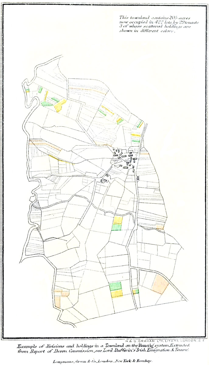 - Run-rig or Rundale, the Irish and Scotch modern open-field system, 3. Survival of methods of tribal system now used in subdivision of holdings among heirs, 226, 230, 438–440